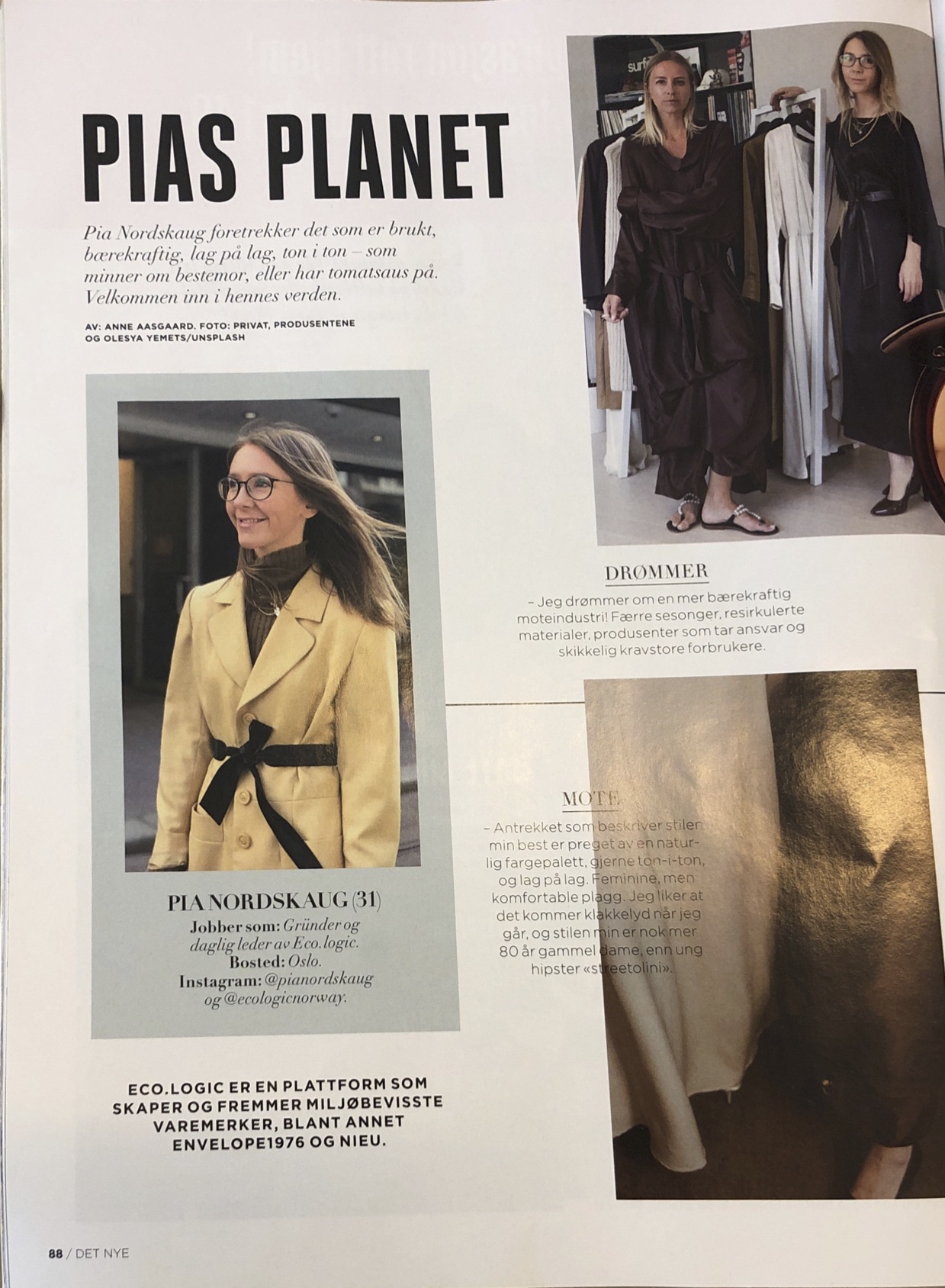 “Jeg drømmer om en mer bærekraftig moteindustri! Færre sesonger, resirkulerte materialer, produsenter som tar ansvar og skikkelig kravstore forbrukere.” -Pia Nordskaug, CEO eco.logic